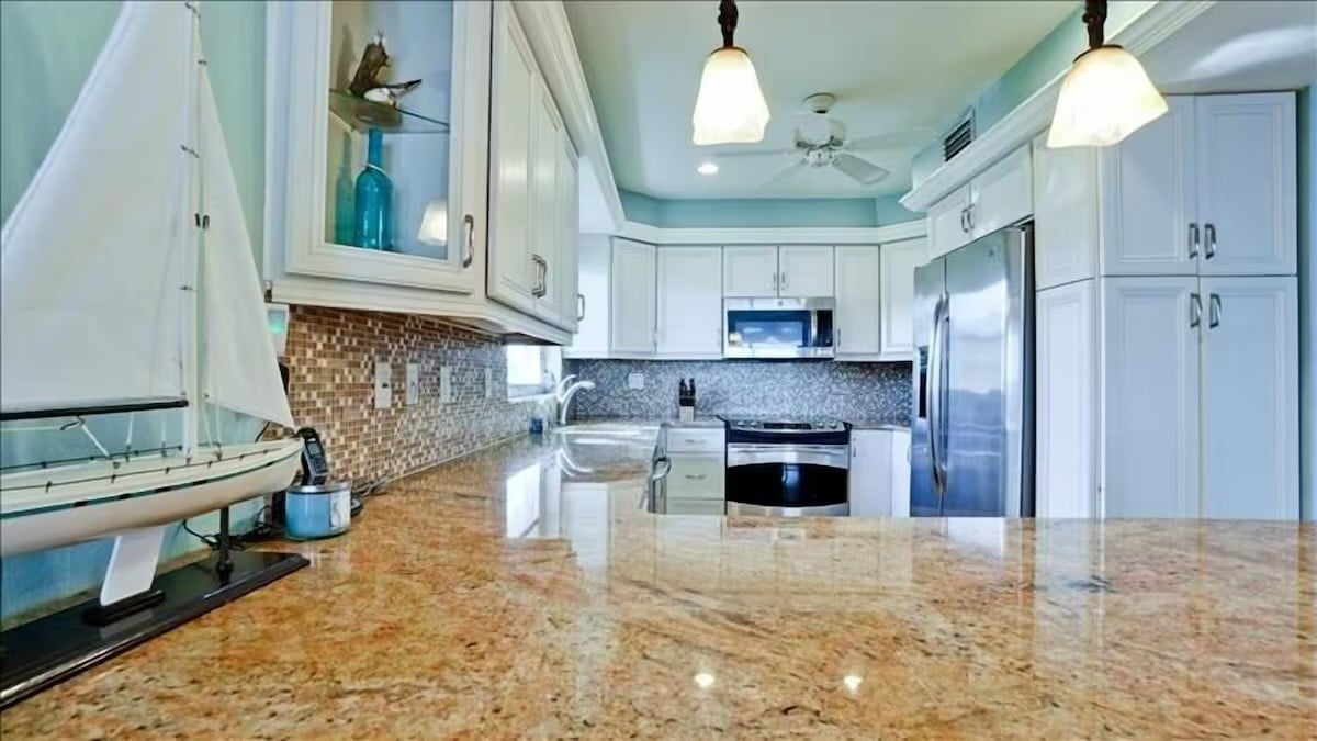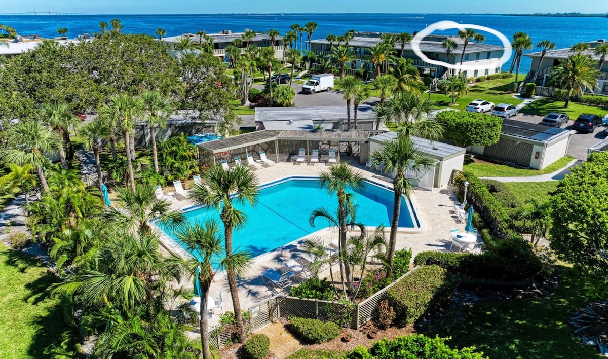 Escape to the serene beauty of West Bay Point Moorings, offering a stunning views of Tampa Bay. This resort-style community in Holmes Beach provides the perfect coastal retreat. Relax in your 2-bedroom condo with a coastal flair, complete with luxury linens. Open the floor-to-ceiling sliders in the master to let the island breeze flow. The gourmet kitchen, equipped with a full array of tools, makes meal preparation a delight as you enjoy waterfront views. Plus, it includes its own boat slip.